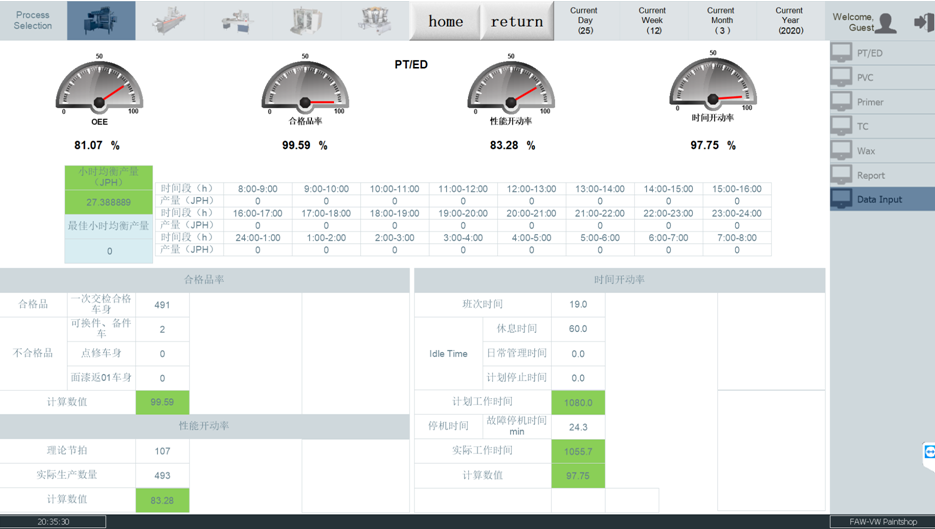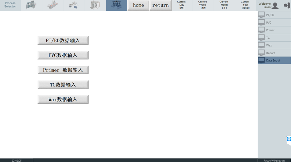 系統功能 配置底漆參數:底漆為涂裝工藝中一個子工藝,對應的計算需要手工設置對應參數。 配置PVC參數:PVC為涂裝工藝中一個子工藝,對應的計算需要手工設置對應參數。 配置中涂參數:中涂為涂裝工藝中一個子工藝,對應的計算需要手工設置對應參數。 配置灌蠟參數:灌蠟為涂裝工藝中一個子工藝,對應的計算需要手工設置對應參數。 配置灌蠟參數:灌蠟為涂裝工藝中一個子工藝,對應的計算需要手工設置對應參數。 用訂單號查詢配方:查詢某個編號的配方是否存在。 實時采集生產過程數據:對需要參與運算的多個生產過程進行實時采集,生產數據來自MES系統。 計算:利用配置參數和生產過程數據計算每天的值。 數據查詢:查詢指定日期內數據 數據報表:導出指定日期內報表。 |